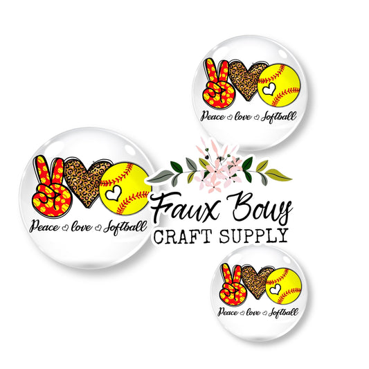 Peace Love Softball(Custom)- 12mm Glass Cabochon