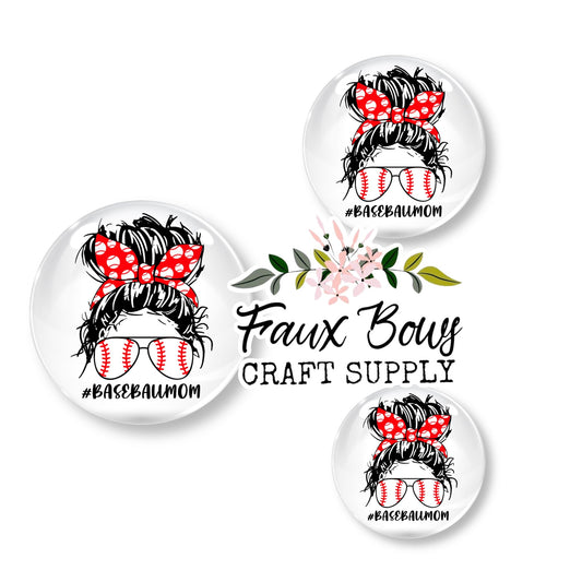 Baseball Mom Messy Bun (Custom)- 12mm Glass Cabochon