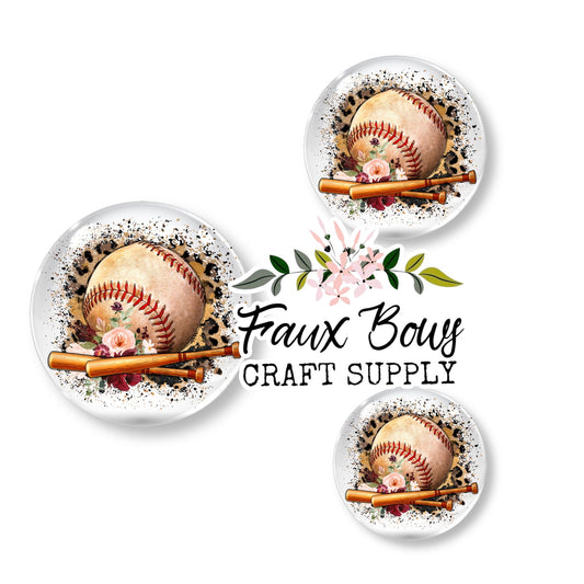 Baseball Floral (Custom)- 12mm Glass Cabochon
