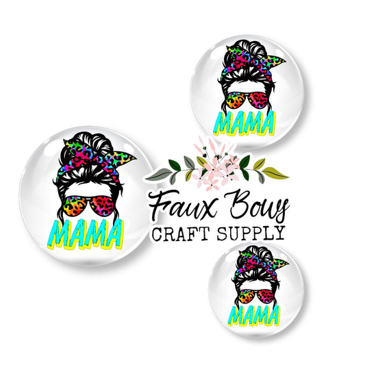 Mama Tie Dye Cheetah Messy Bun (Custom)- 12mm Glass Cabochon (Copy)
