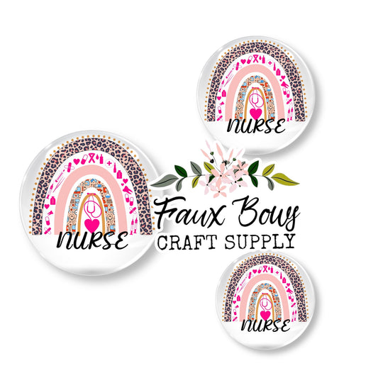 Nurse Pink Rainbow (Custom)- 12mm Glass Cabochon