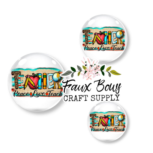 TEACHER Peace Love Teach (Custom)- 12mm Glass Cabochon