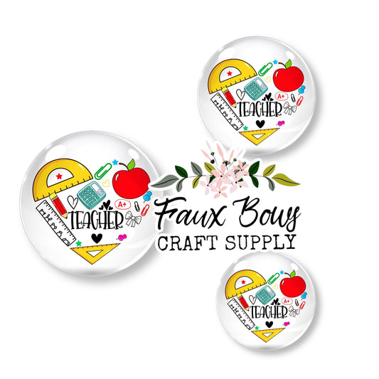 Teacher Supplies Heart (Custom)- 12mm Glass Cabochon