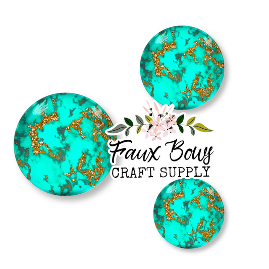 Turquoise/Gold Marble (Custom)-8/10/12mm Glass Cabochon