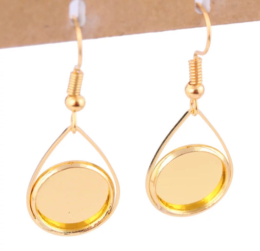 Teardrop-12mm Cabochon Base Dangle Earring Hooks
