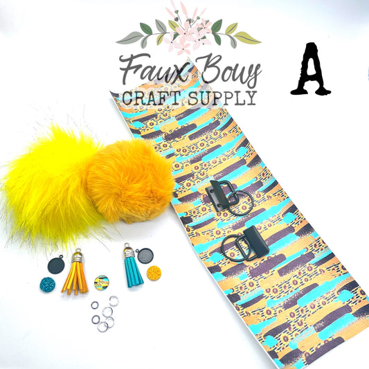 Teal Sunflower Brushstrokes Keychain DIY KIT