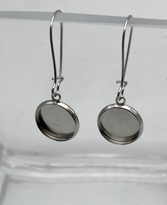 Wire Dangle Stainless Steel-12mm Cabochon Earring Base (Pair)